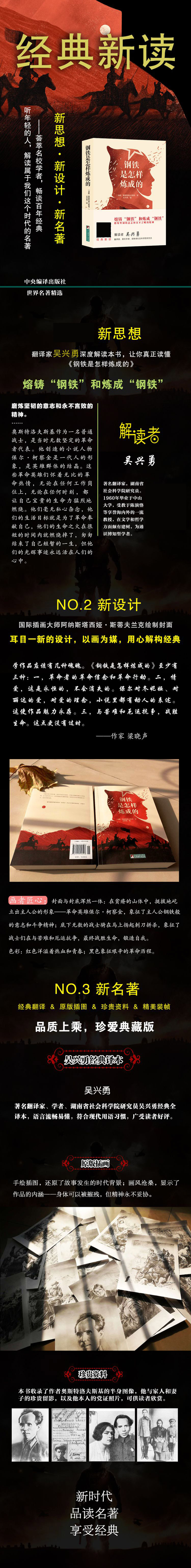第一章 在“过节以前你们当中上我家补考的,都站起来!” 说话的是一个面部皮肤松弛的长者,身穿长袍,脖子 上挂着厚重的十字架,十分威严地看着全体学生。 四个男孩,两个女孩,从凳子上站起来,这时长者的 两只小眼睛射出凶恶的光,仿佛能把六个学生从头到脚刺 穿。孩子们胆怯地望着这个穿长袍的长老。 这个长老是个神父,他朝两个女生挥挥手:“你们坐 下。” 她们如释重负地嘘了一口气,赶紧坐下。 这个神父名叫瓦西里,他的目光集中在四个男孩的身 上。 “到这儿来,亲爱的宝贝儿!” 瓦西里神父站起身来,挪开椅子,一步步迫近挤成一 堆的男孩们。 “你们这些卑鄙的家伙,谁会抽烟?” 四个男生小心翼翼地齐声回答: “神父,我们不会抽烟。” “你们这群坏蛋,都说不会抽烟,那么谁往面团里撒 烟末的?真的不会抽烟吗?我们马上就可以见分晓!把口 袋翻过来,哎,没听见我的话吗?!翻过口袋来!” 三个男孩开始在自己的口袋里掏摸,将掏出来的东西 一一摆放在桌子上。 神父仔细检查每个孩子的口袋,想在线缝中寻找烟丝 的碎屑,但他什么也没找到,便转向第四个孩子,这个男 孩长着一双黑眼睛,穿着灰色衬衣和蓝色裤子,膝盖上打 着补丁。 “你干吗像木偶似的呆呆地站着不动?” 这黑眼睛的男孩心头隐藏着恨意,看了神父一眼,压 低声音说: “我没有口袋。”说着,伸手摸摸缝死了的袋口。 “哼,没有口袋!你以为这么一来,我就查不出糟蹋 面团的恶作剧是谁干的吗?你以为这一次又可蒙混过关, 继续赖在学校里不走吗?不,小宝贝儿,这次我不能饶恕 你。上次你母亲苦苦哀求,我才把你留下,这回可到头了 。赶快离开这个班级吧,滚吧!”说着,他便用劲揪住男 孩的耳朵,把他推到走廊里,随手关上门。 教室里鸦雀无声,学生们被吓得蜷缩在座位上。谁也 不明白,保尔·柯察金为什么被撵出学校。只有帕夫卡的 好朋友谢廖沙·布鲁扎克是这件事的见证人。那天,他们 六个考试不及格的学生去神父家补考,在厨房里等候,他 亲眼看见帕夫卡将一撮黄花烟草撒在神父家准备做复活节 蛋糕的面团上。 被逐出教室的帕夫卡坐在最下面的一层台阶上,心中 思前想后,很不是滋味。他感到自己无颜面回家见母亲, 母亲对他自然很关爱,但母亲也够辛苦的了,她在一个消 费税视察官家中当厨娘,每天从早忙到晚,他怎么好意思 将这事向母亲说呢? 泪水哽住了帕夫卡的喉咙。 “现在我该怎么办呢?全怪那个该死的神父。可我干 名家直译无删减:著名翻译家、学者、湖南省社会科学院研究员吴兴勇全译本,语言流畅易懂,符合现代用语习惯,广受读者好评。 附赠音频解读:解读者:吴兴勇,著名翻译家,湖南省社会科学院研究员。1960年毕业于中山大学,受教于陈演恪等享誉海内外的一流教授,在文学和哲学方面颇有建树,为通识博知型学者。 国外原版插图:内附10余幅作者手绘插图,还原了故事发生的时代背景;画风沧桑,显示了作品的内涵——身体可以被摧残,但精神永不妥协。 精美装帧:70克胶版纸,清晰印刷,版面舒朗,保证阅读的舒适性。