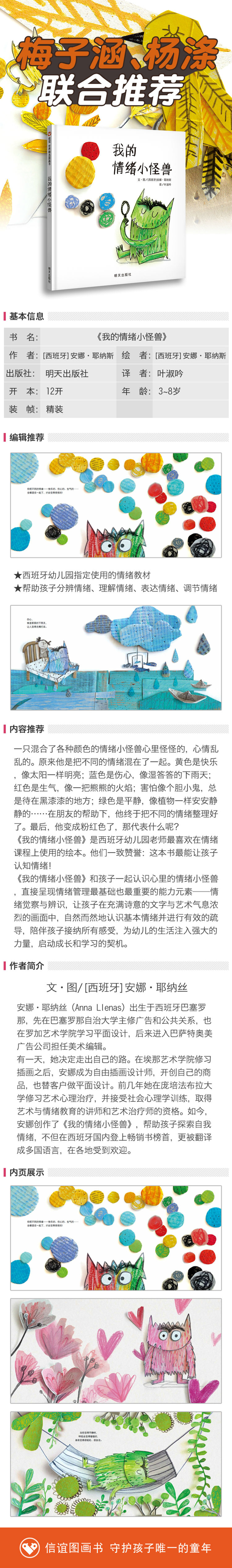我的情绪小怪兽(精) 出版时间 2017-05-01T00:00 古代言情 88258 作者: (西班牙)安娜·耶纳斯|译者:叶淑吟|绘画:(西班牙)安娜·耶纳 出版社: 明天 原售价: 49.80 折扣价: 0.00 折扣购买: 我的情绪小怪兽(精) ISBN: 9787533288129 作者简介 内容简介 上一篇:第一天上幼儿园(精装绘本)下一篇:咔嗒咔嗒啾睡不着/嘻哈农场系列